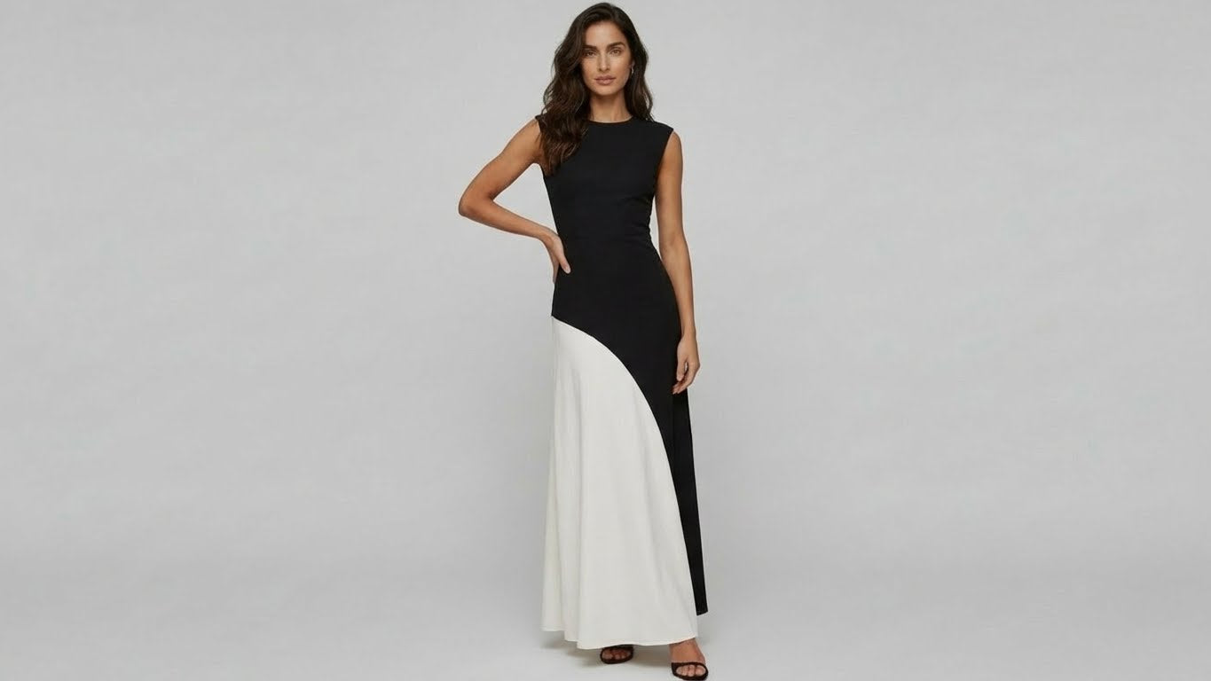 Charlotte - Vestido de contraste en blanco y negro